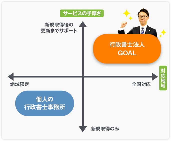 期限が切れて許可が失効することの無いように、許可の更新期限をGOALにて管理し、1ヶ月ほど前にご連絡させていただきます。